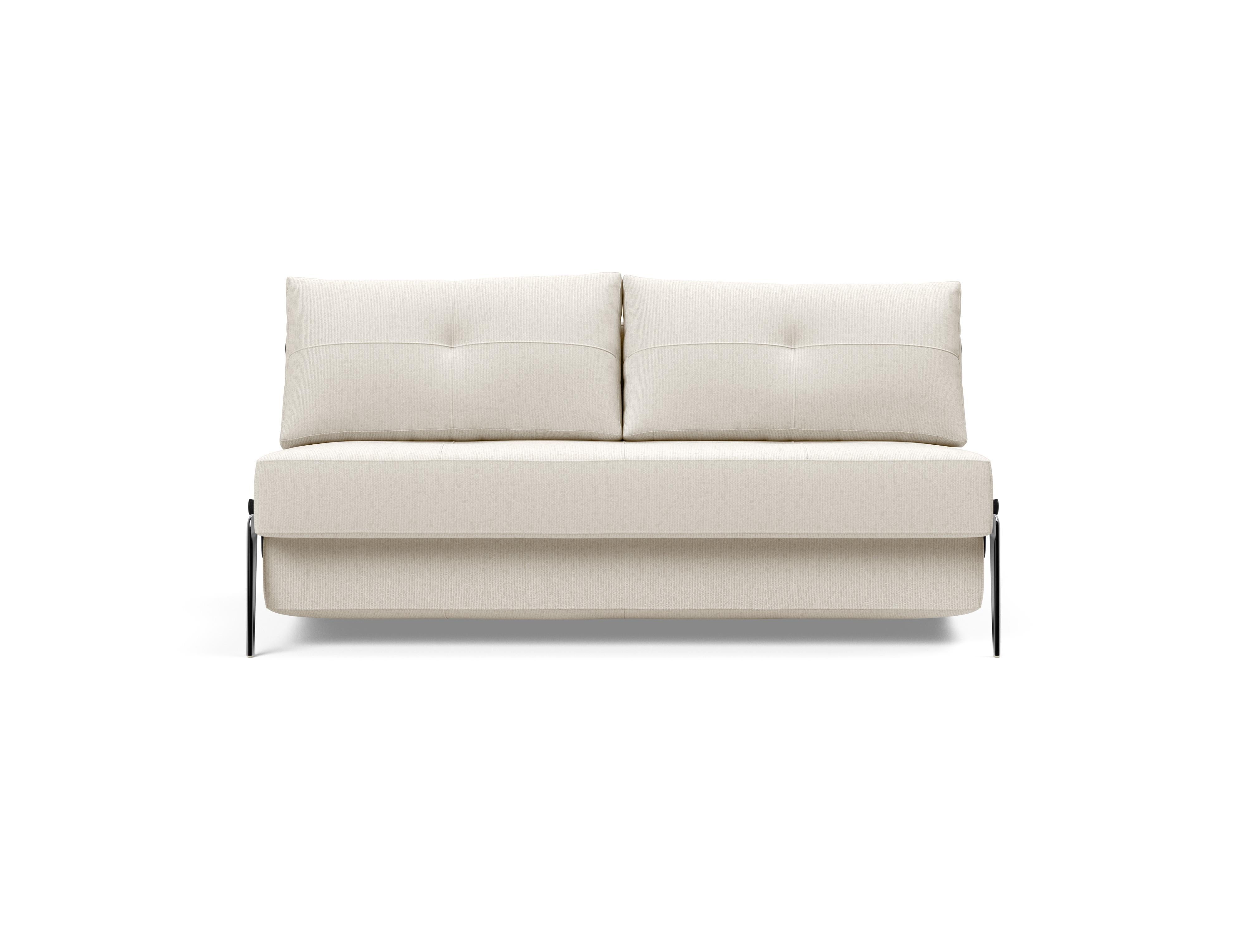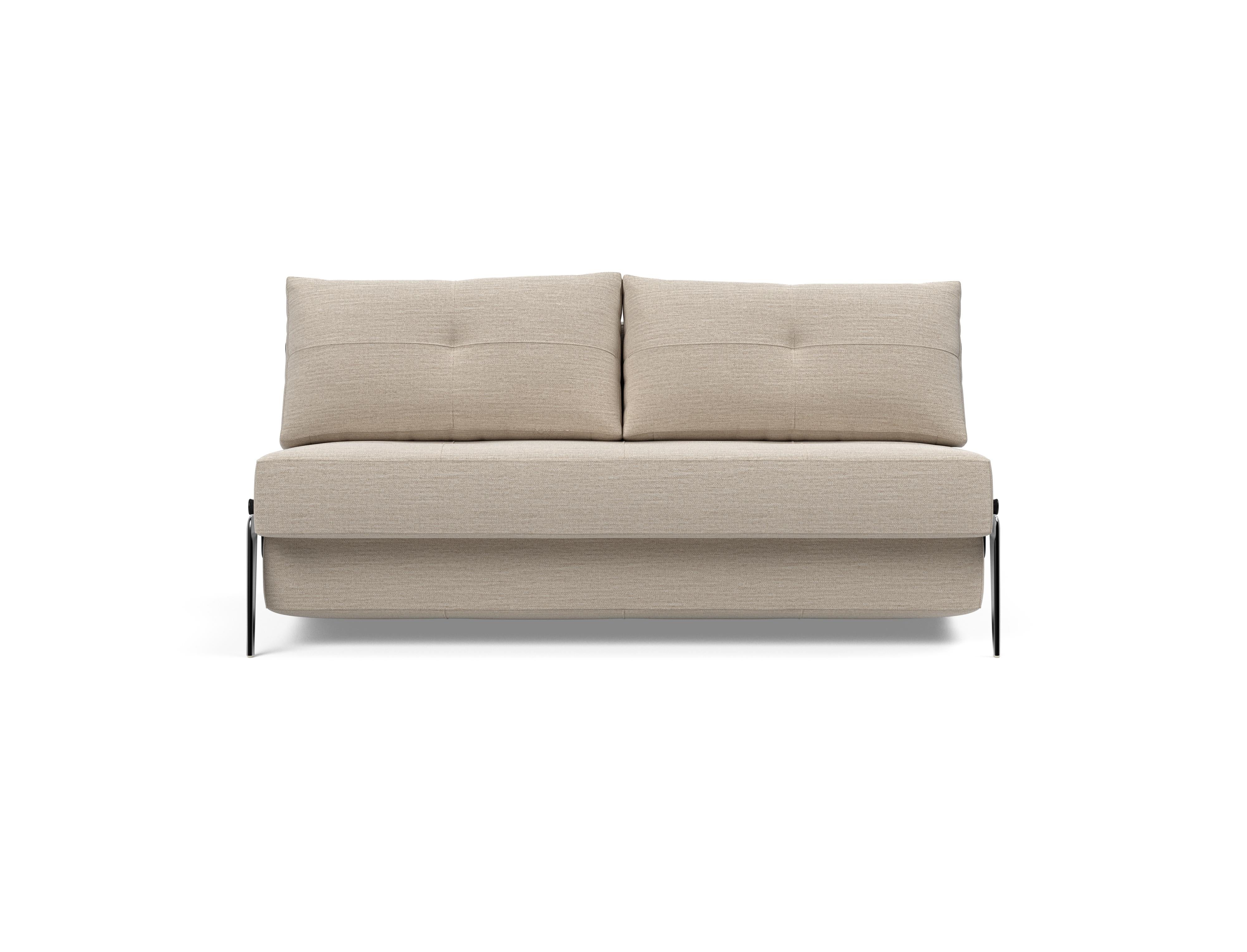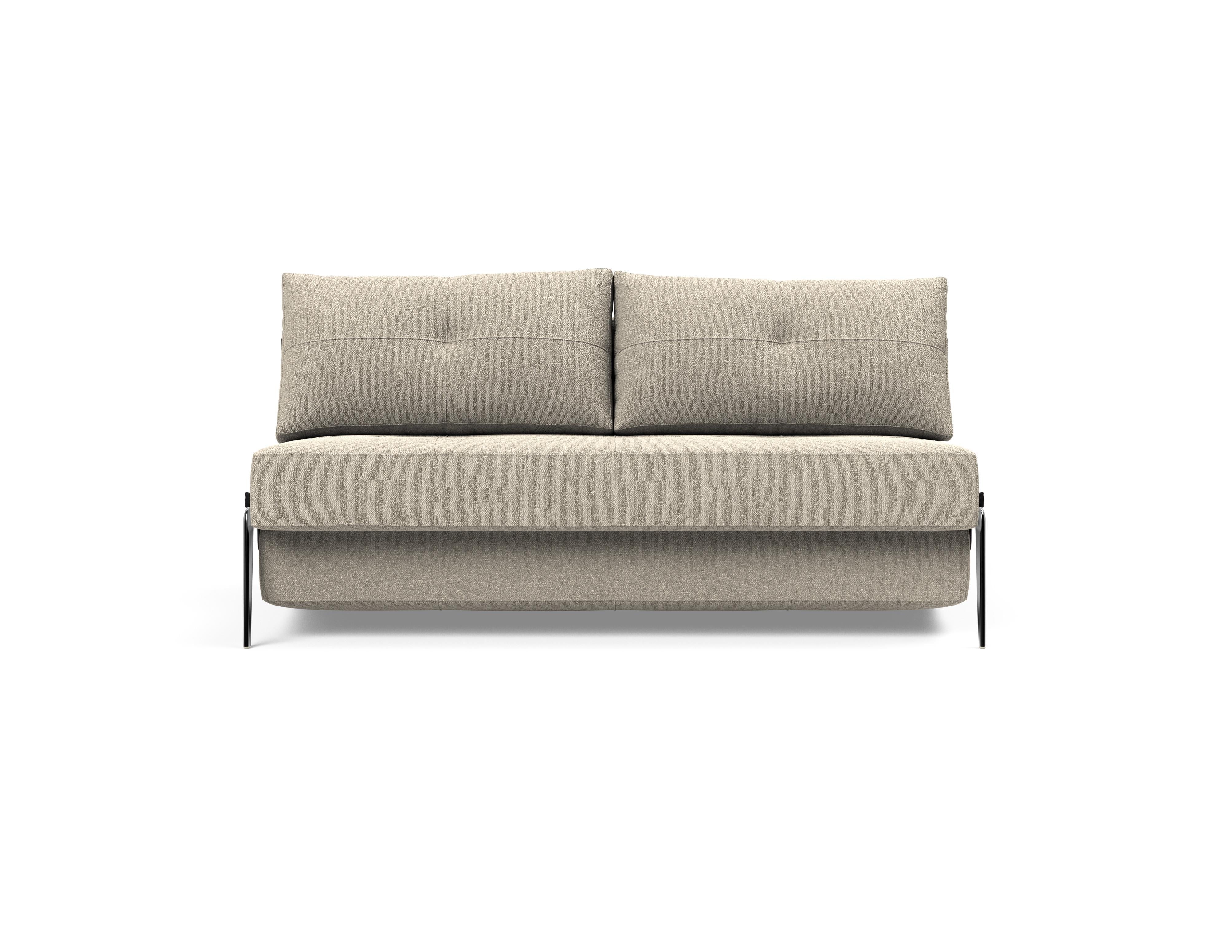 Cubed Alu er en del af vores kompakte designlinje, der fokuserer på pladsoptimering. Ombygningen fra sofa til seng fuldendes ved at trække i remmen skjult mellem de to bløde rygpuder, hvor Cubeds ben automatisk foldes ud og giver en holdbar 160 x 200 cm king size seng. Den nemme ombygning fra sofa til seng sparer plads, ligesom lynlåsopbevaringen under sædet muliggør opbevaring af sengetøj eller tæpper. Komforten er designet med en No-zag madras, der giver dig en jævn og blød komfort, som er yderligere forbedret af et tykt lag højspændstigt skum.