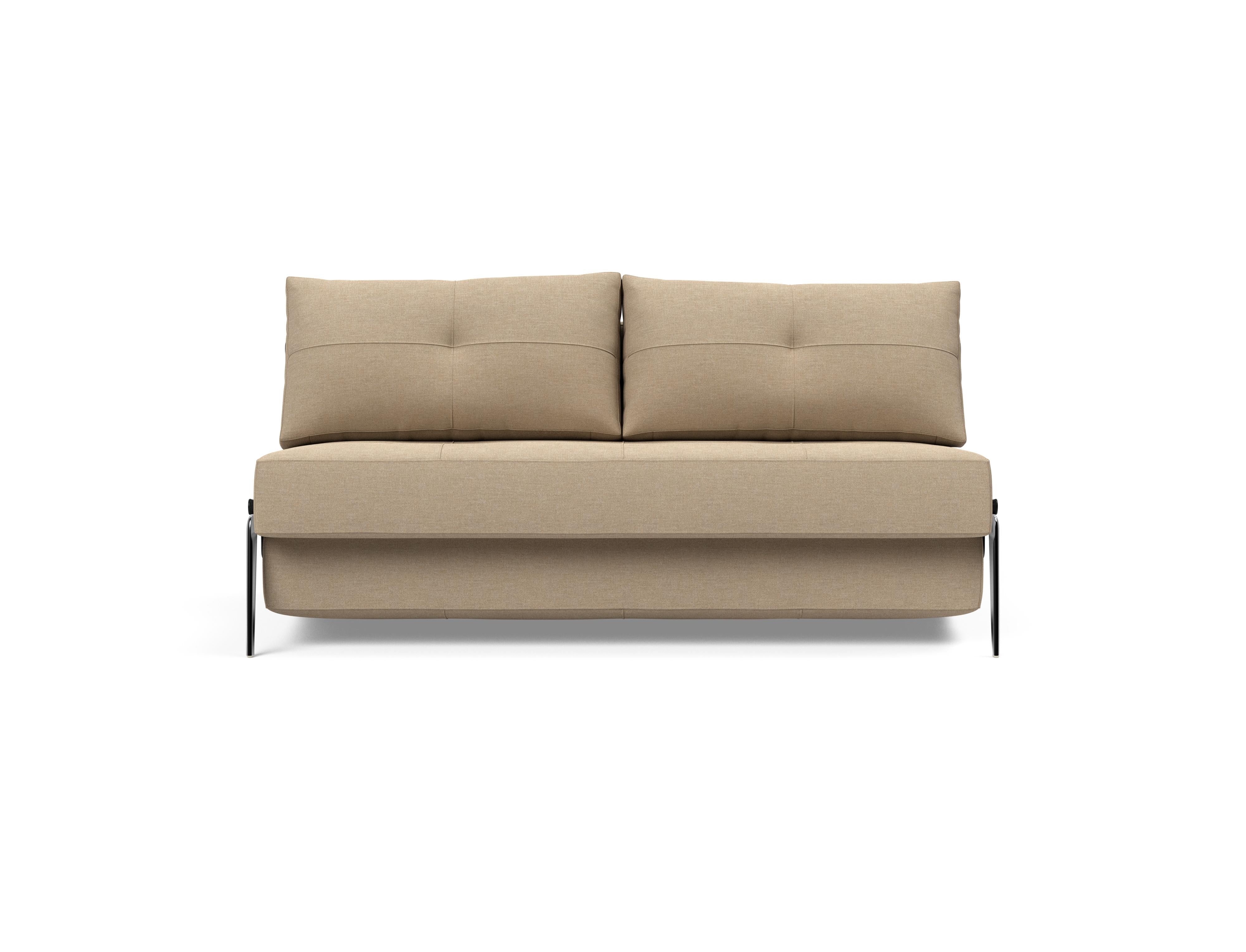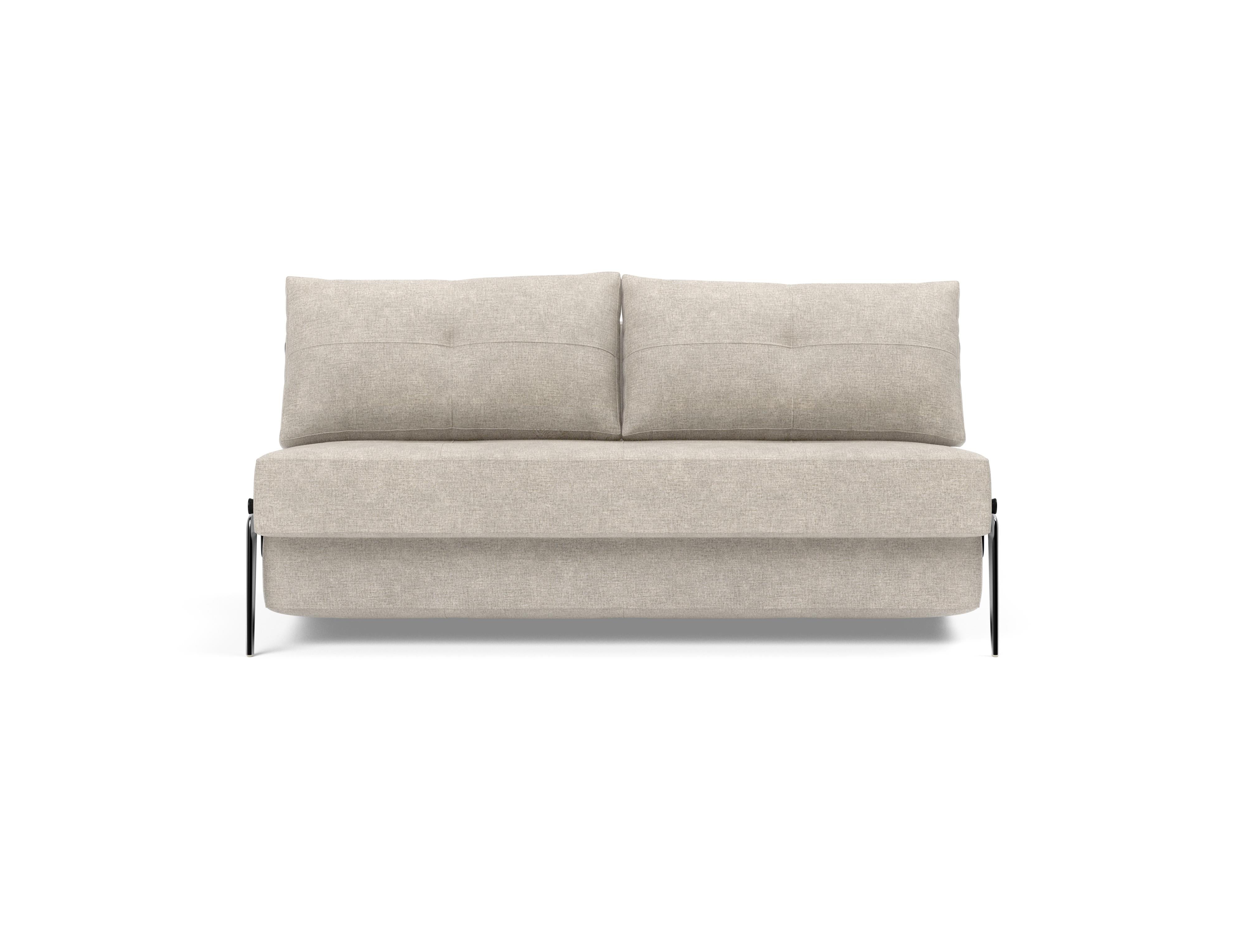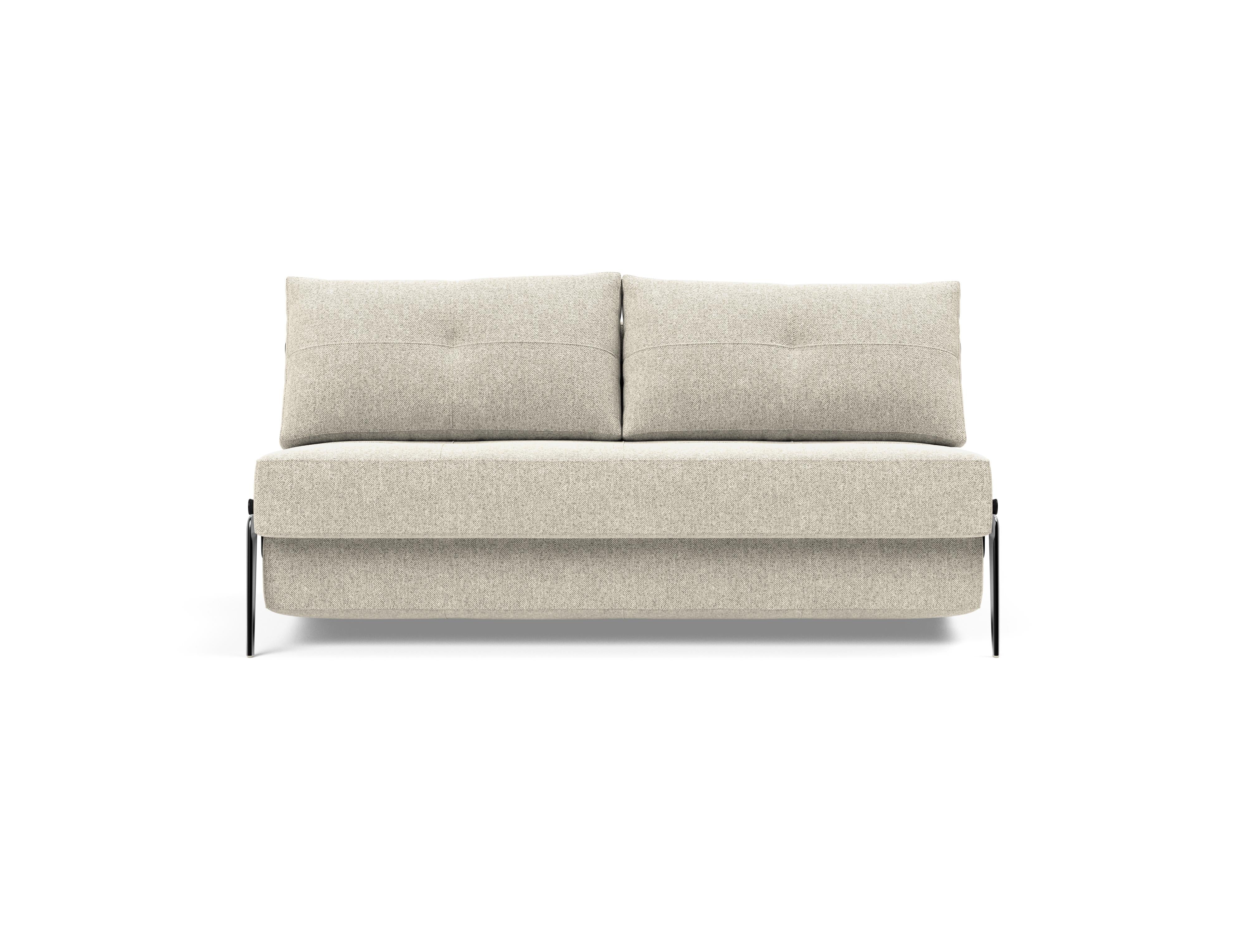 Cubed Alu er en del af vores kompakte designlinje, der fokuserer på pladsoptimering. Ombygningen fra sofa til seng fuldendes ved at trække i remmen skjult mellem de to bløde rygpuder, hvor Cubeds ben automatisk foldes ud og giver en holdbar 160 x 200 cm king size seng. Den nemme ombygning fra sofa til seng sparer plads, ligesom lynlåsopbevaringen under sædet muliggør opbevaring af sengetøj eller tæpper. Komforten er designet med en No-zag madras, der giver dig en jævn og blød komfort, som er yderligere forbedret af et tykt lag højspændstigt skum.